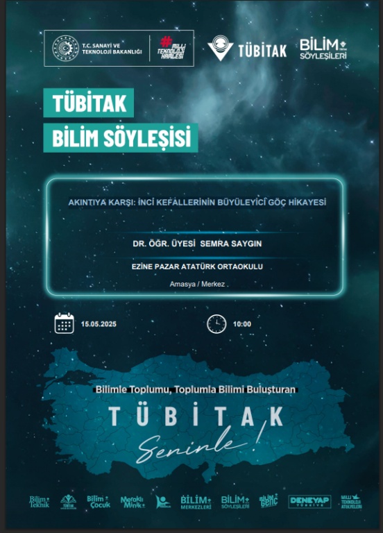DR. ÖĞR. ÜYESİ SEMRA SAYGIN tarafından AKINTIYA KARŞI: İNCİ KEFALLERİNİN BÜYÜLEYİCİ GÖÇ HİKAYESİ adlı Tübitak Bilim Söyleşisi yapılacaktır.
